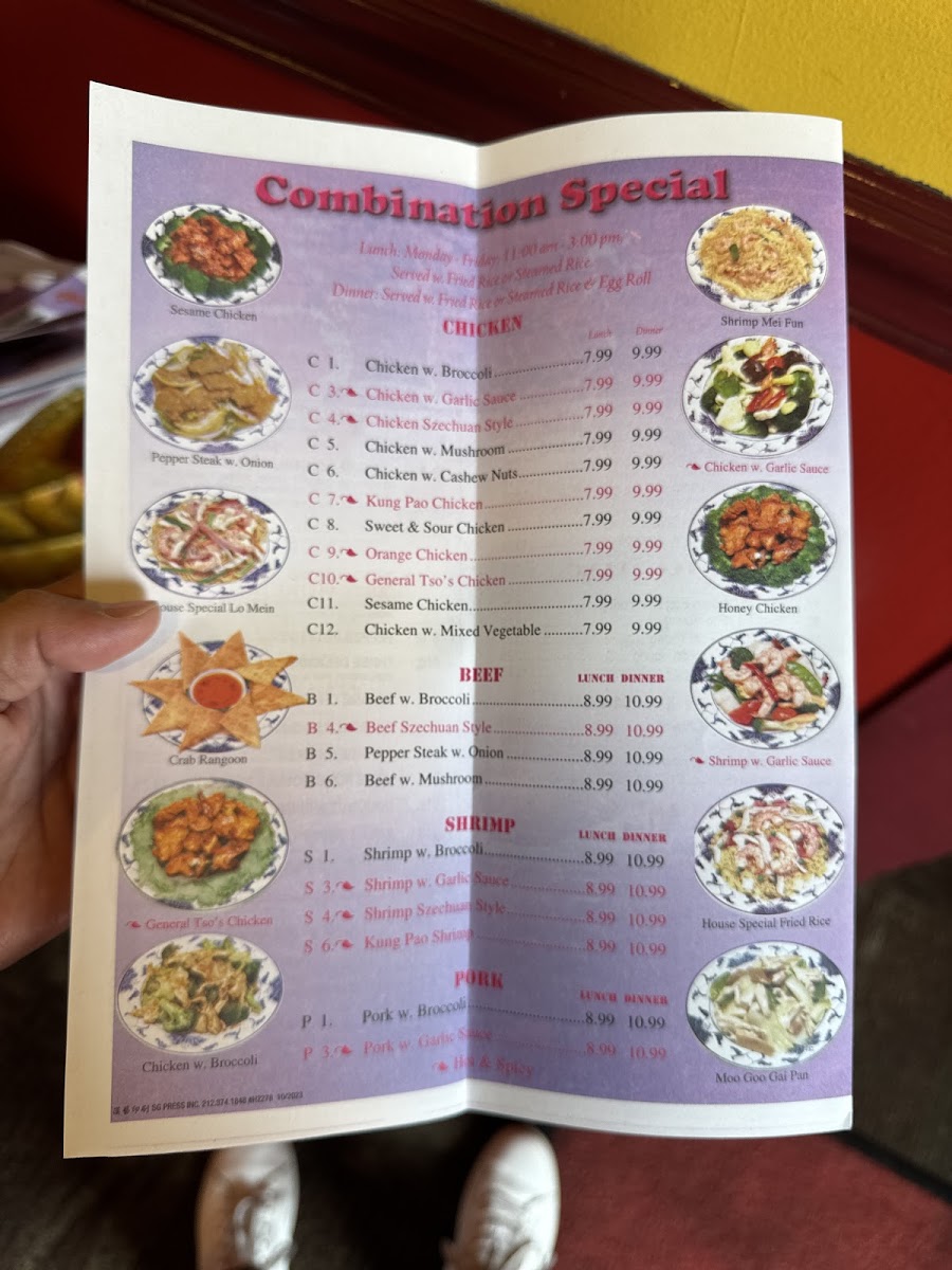 The menu features enticing appetizers like Fried Crab Rangoon and Spring Rolls, alongside a selection of hearty soups such as Egg Drop and Hot & Sour Soups. For main dishes, savor the robust flavors of Chicken Szechuan Style or the comforting Moo Goo Gai Pan. If you’re in the mood for something lighter, options like Szechuan Chicken with Broccoli also shine through.